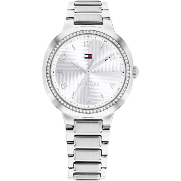 This Tommy Hilfiger watch has a case made of stainless steel with a diameter of 32 mm and is fitted with a stainless steel band. Inside the case lies a Seiko movement and the watch features a Mineral crystal.
