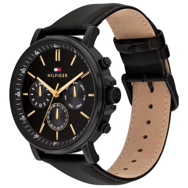 Gender Men Movement Made Japan Movement Quartz Functions Multifunction Case Diameter43mm Dial Type Analoque Case Material Ionic Plated Black Steel Dial Color Black Bracelet Color Black Bracelet Material Leather Water..