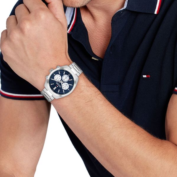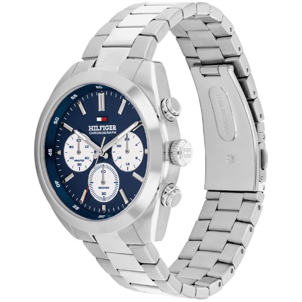 Gender Men Movement Made Japan Movement Quartz Functions Chronograph Case Diameter40mm Dial Type Analoque Case Material Stainless Steel Dial Color Blue Bracelet Material Stainless Steel Water Resistance50 metres Glass Mineral..