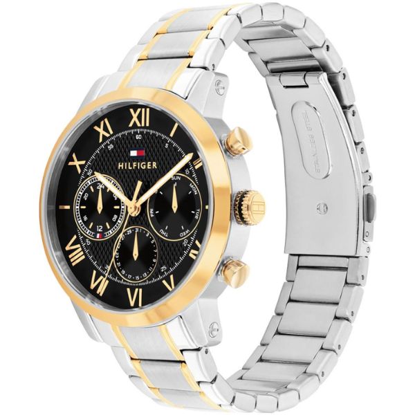 Gender Men Movement Made Japan Movement Quartz Functions Multifunction Case Diameter42mm Dial Type Analoque Case Material Two Tone Plated Steel Dial Color Black Bracelet Material Two Tone Plated Steel Water..