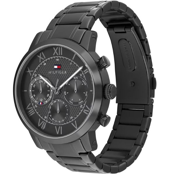 Gender Men Movement Made Japan Movement Quartz Functions Multifunction Case Diameter42mm Dial Type Analoque Case Material Ionic Plated Black Steel Dial Color Black Bracelet Color Black Bracelet Material Ionic Plated..