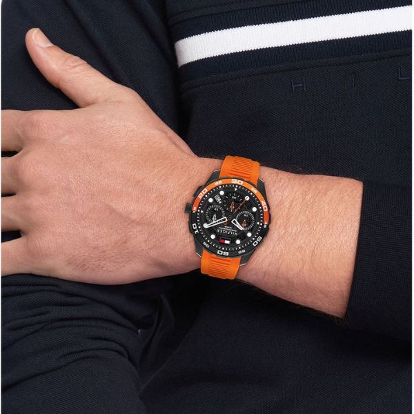 * Case Size: 44mm * Case Thickness: 12mm * ATM: 10 ATM * Dial: Dimensional transparent dial with bold dot indexes * Movement: Japanese Chronograph with Date Window(Epson VR32) * STT: 7/4/2025
