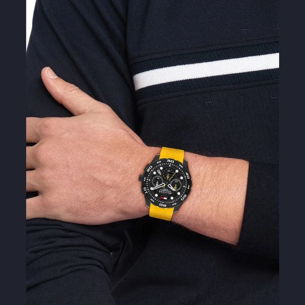 * Case Size: 44mm * Case Thickness: 12mm * ATM: 10 ATM * Dial: Dimensional transparent dial with bold dot indexes * Movement: Japanese Chronograph with Date Window(Epson VR32) * STT: 7/4/2025