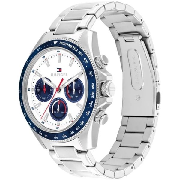 Gender Men Movement Made Japan Movement Quartz Functions Multifunction Case Diameter44mm Dial Type Analoque Case Material Stainless Steel Dial Color White Bracelet Material Stainless Steel Water Resistance50 metres Glass Mineral..