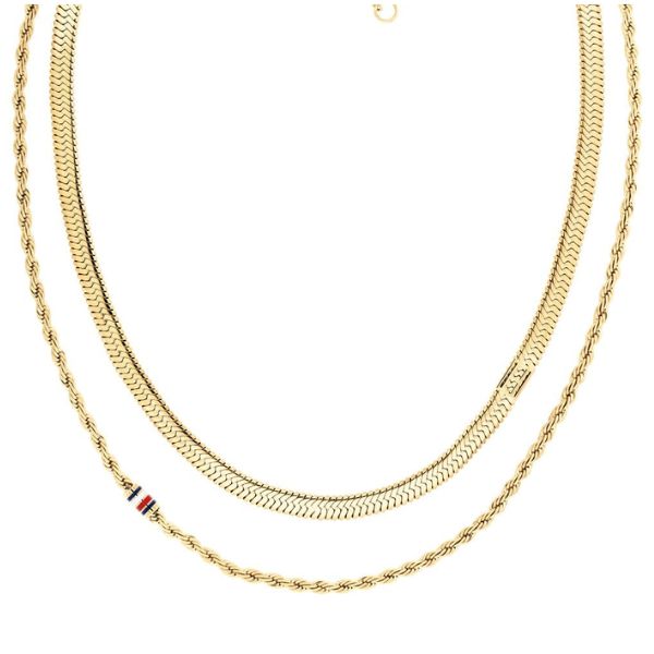 • Minimal, Modern , Sleek, necklace gold plated stainless stell• lobster closure • 46.5cm with a 5cm extender• in a Tommy Hilfiger gift box Packaging Gift Box..