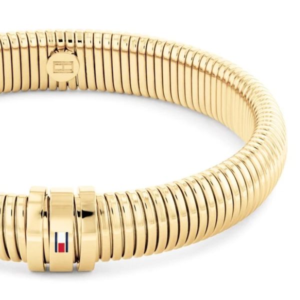 • Minimal, Modern, Sleek, bracelet of polished gold plated stainless steel.• in a Tommy Hilfiger gift box. Packaging Gift Box..