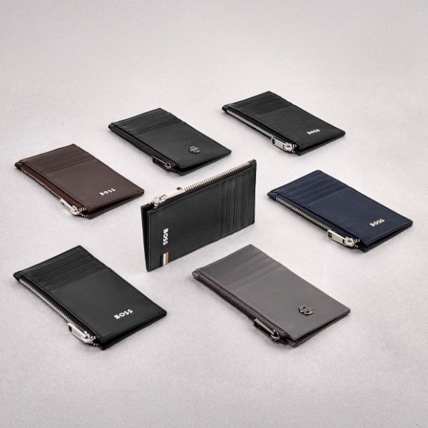 The Classic Grained line is crafted from carefully selected top-grain leathers, defined by a grained texture that conveys a timeless and sophisticated appeal. Each piece is skillfully assembled and beautifully finished with a crisp chrome BOSS signature plate and a tone-on-tone monogram lining, highlighting refined craftsmanship. Available in navy, camel, and black, this zipped card holder is designed around a spacious main zipped section with a gusset, and features five card slots on the front — balancing practicality with understated elegance.