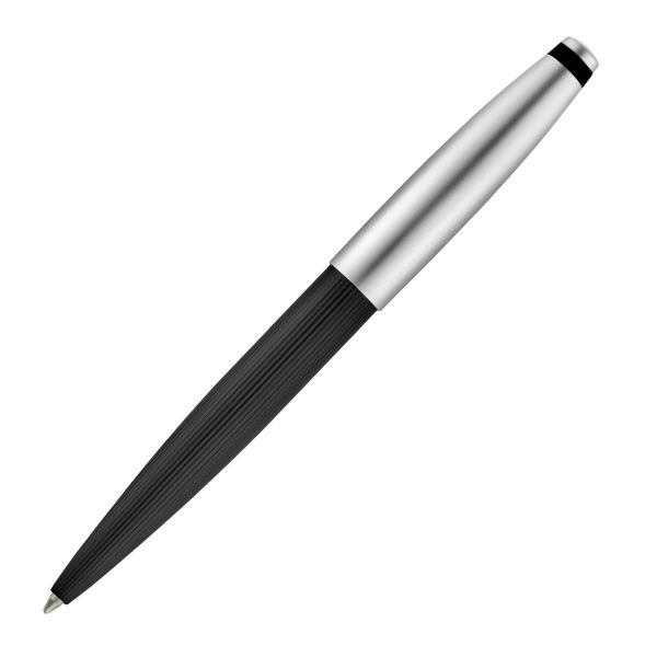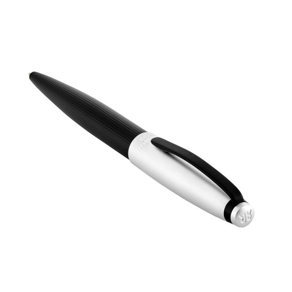 The Benson ballpoint pen features a refined two-tone design, pairing a matte chrome-plated cap luxuriously engraved with the new Cerruti logo with black matte trims echoing the pinstripe on the lower barrel. Finished with the new RR logo at the top, it delivers a smooth, reliable writing experience wrapped in understated elegance.