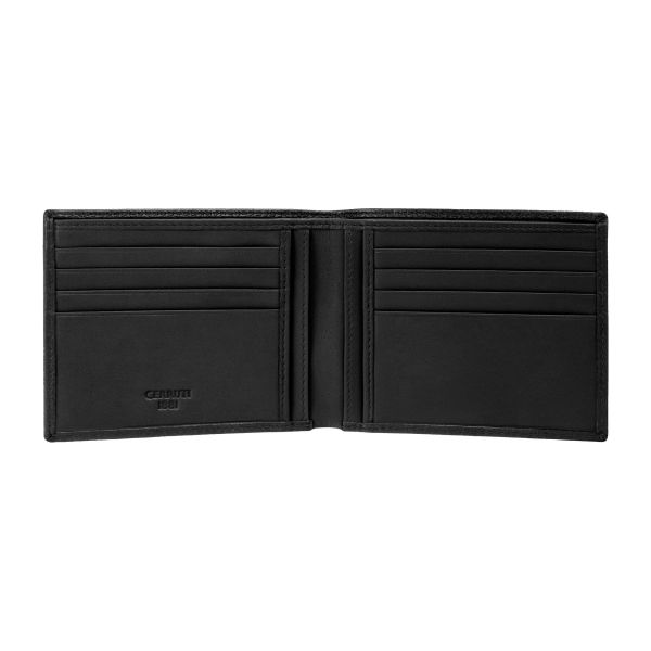 The CERRUTI 1881 Jefferson classical wallet is the ultimate everyday companion, offering a total of eight card slots, four vertical compartments, and a spacious main note compartment arranged in a timeless, intuitive layout. Crafted in carefully chosen grained, best-quality leather, it combines durability with an elevated tactile feel that enhances daily use. The miniature double R signature provides the perfect final touch—elegant, discreet, and visible only to the most discerning eyes—while its crisp chrome finish highlights the classical black version with a sharp and sophisticated contrast.