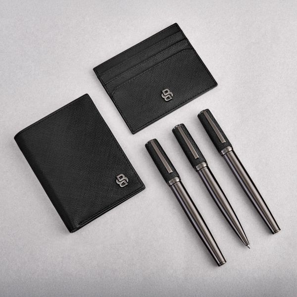 Built on the modern Arche silhouette, this pen features a cap wrapped in refined saffiano texture, juxtaposed with polished metallic barrels and caps plated in sleek gunmetal. A 3D Double B signature crowns the design, adding distinctive character. Perfectly paired with the new saffiano small leather goods, it is a statement of timeless style with a modern vibe.