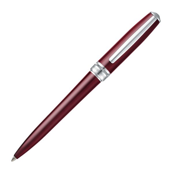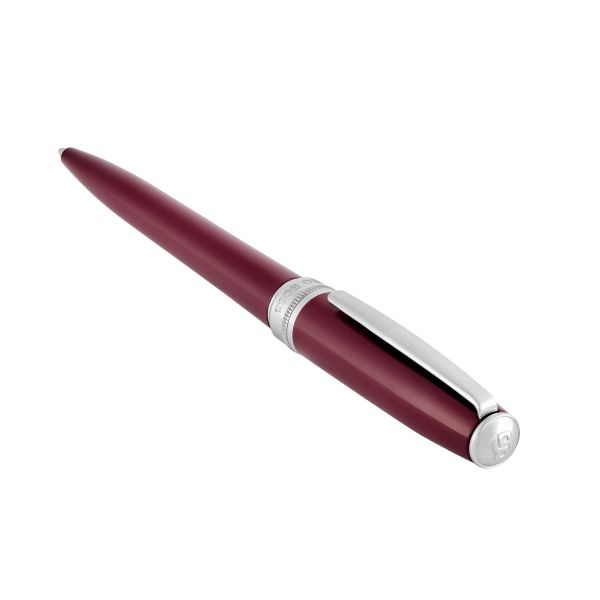 The Essential ballpoint pen in rich burgundy delivers a warm, elegant expression of the iconic silhouette. Accented with crisp chrome trims, the design is enhanced by a subtle dented ring referencing the brand’s writing legacy. Finished with the new Double B logo, this piece offers a timeless yet distinctive presence.