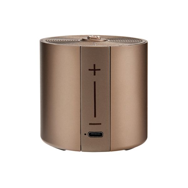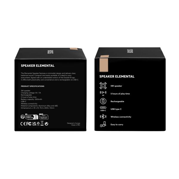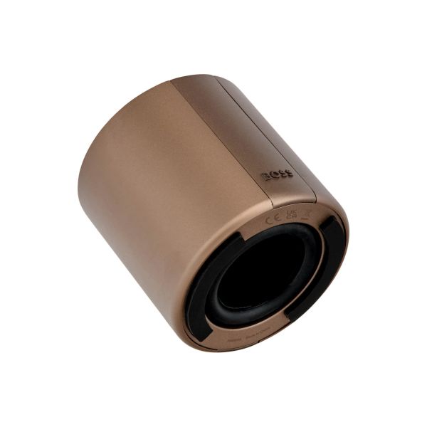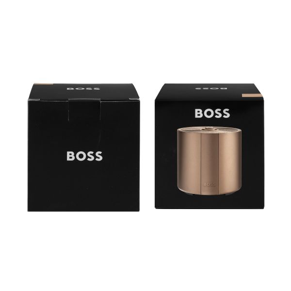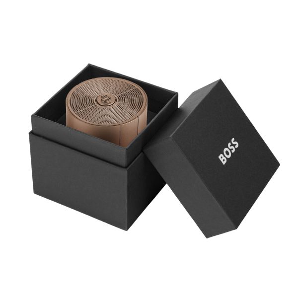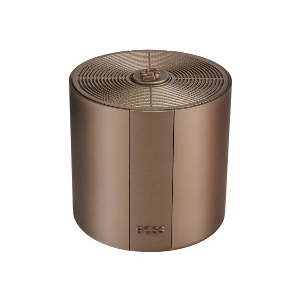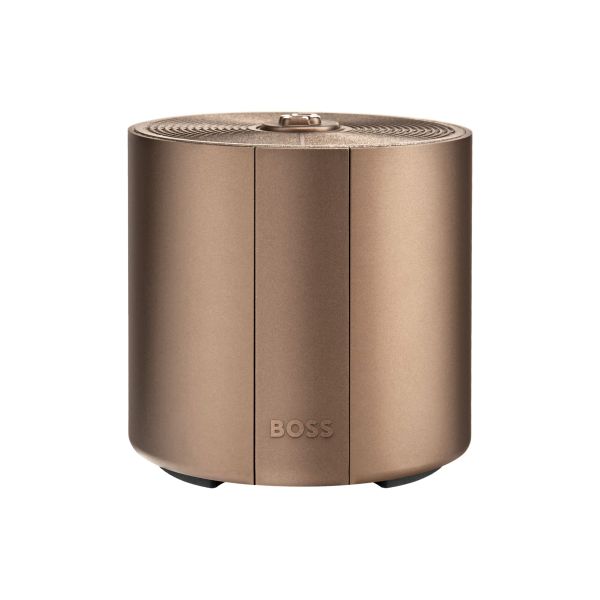 The Elemental speaker is compact and easily portable, pairing refined metallized finishes with a clear, engaging 5W sound. The Double B logo highlights the main control button, while the BOSS signature subtly completes the design. With five hours of autonomy and convenient USB-C charging, it is both practical and expressive. Available in three versions—black, silver, and metallized camel.