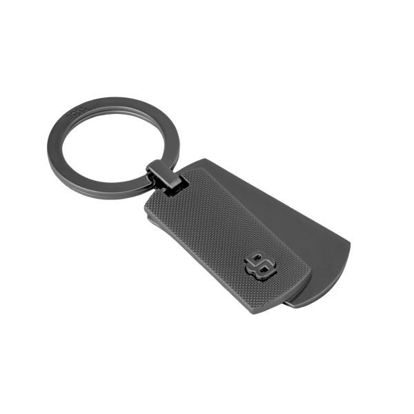 The Double B Diamond keyring is defined by a clean, precise design built around contrast and detail. It features two separate plates, one embossed with the BOSS logo and the other finished with a tight diamond-cut pattern for a refined, luxurious feel. A three-dimensional Double B plate is integrated onto the diamond-cut surface, creating a distinctive signature with added depth. The two-plate construction allows clear and practical marking areas while maintaining a sharp, minimal look. Available in chrome, gunmetal, or a black and gunmetal combination.