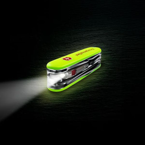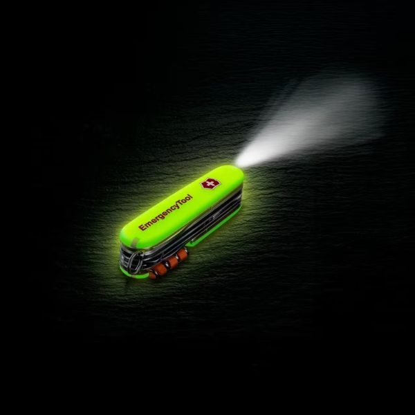 Swiss Made Multi-Tool with 23 Functions for Everyday Preparedness and Emergencies Considering the likelihood of power outages during major disasters such as earthquakes, typhoons, or heavy rainfall, we developed a specialized model based on the 'Huntsman Lite,' which features an integrated light function. This palm-sized, multi-functional tool includes a glow-in-the-dark handle for easy visibility in the dark and a whistle to signal your location during emergencies. Equipped with a built-in fire starter and fire stick, it allows you to easily ignite a fire even without electricity or gas. This tool serves as a reliable companion for cooking, boiling water, and staying warm in challenging situations. * Height: 26 mm * Length: 91 mm * Width: 26 mm * Weight: 121 g