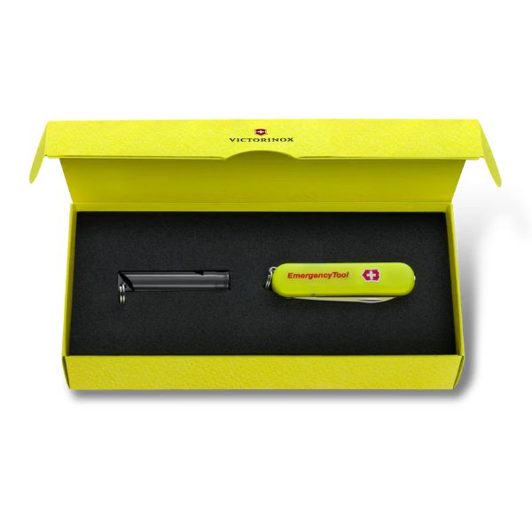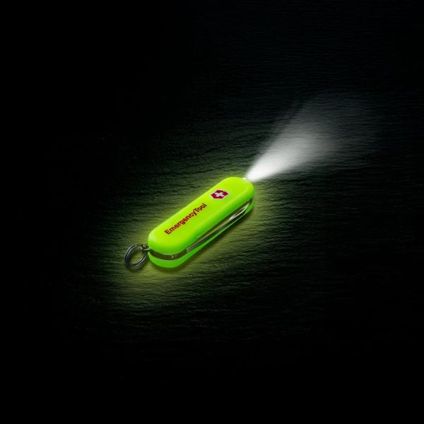 Considering the likelihood of power outages during major disasters such as earthquakes, typhoons, or heavy rainfall, we developed a specialized model based on the 'Signature Lite,' which features an integrated light function. This palm-sized, multi-functional tool includes a glow-in-the-dark handle for easy visibility in the dark and a whistle to signal your location during emergencies