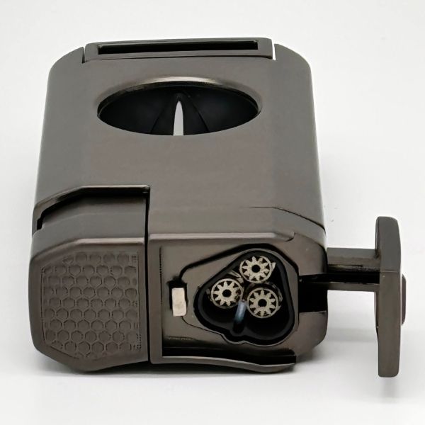 Equipped with 3 nozzles providing intense flame and a sliding V-cutter for cigars for ultimate convenience. Perfect for cigar enthusiasts or as a stylish gift. Unisex lighter. * Premium Quality * Metal * Piezo Igniter * 3 Jet Nozzles * Refillable * Gift Box
