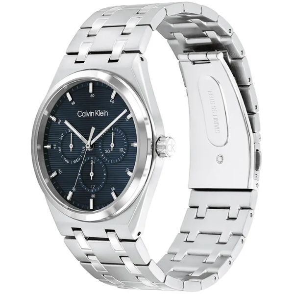 This Calvin Klein watch has a case made of stainless steel with a diameter of 39 mm and is fitted with a stainless steel band. Inside the case lies a Seiko Instruments Inc. movement and the watch features a Mineral crystal.