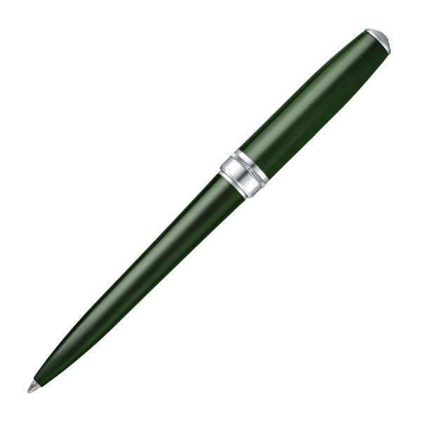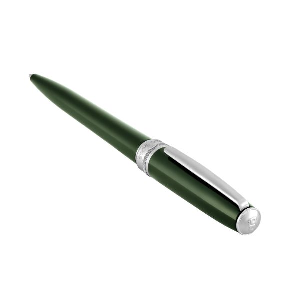 Rendered in a deep, elegant green lacquer, this Essential ballpoint pen brings a distinctive yet timeless tone to the collection. Chrome trims provide a clean contrast, while the signature dented..