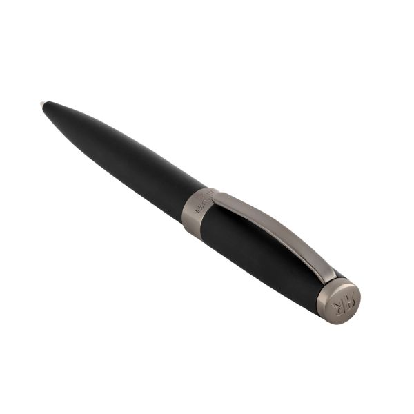 The Easton pen reveals a more sophisticated character in its matte black edition, crafted with a soft-touch finish contrasted by shiny gunmetal trims. This sleek interpretation of the classical shape delivers an elegant and refined presence. Completed with the new RR logo at the top, the Easton pen stands as a modern and distinguished writing companion.